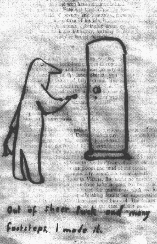 Закончив, он взял нож, проколол каждую страницу и связал их бечевкой. В итоге получилась тринадцатистраничная книжка, где говорилось вот что: